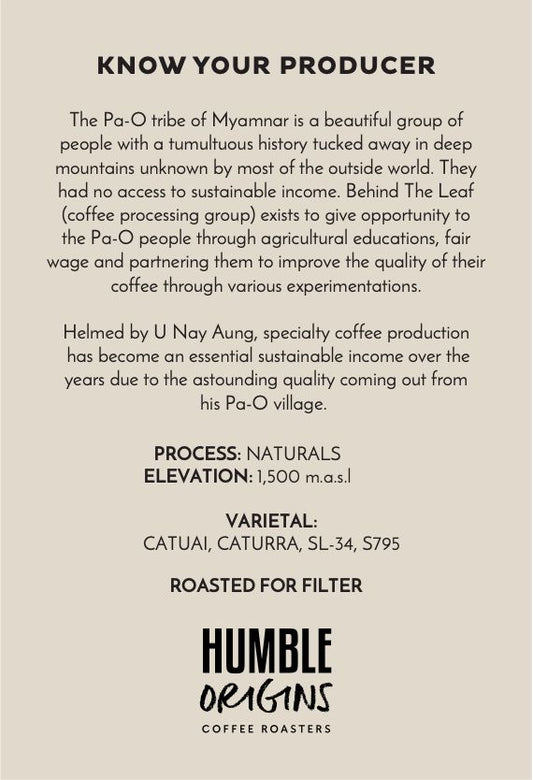 Back in 2013, Javier and Melissa uprooted from Singapore to embark on an adventure to then Asia's Last Frontier - Myanmar & started their first cafe in Yangon. In 2015, a newfound mission began alongside USAID, Winrock International, Coffee Quality Institute (CQI) & Myanmar Coffee Association (MCA) to improve the livelihood of coffee farmers by elevating the quality of coffee & introduce to the world - #MYANMARSPECIALTYCOFFEE. Working closely with & pre-financing some of the coffee farmers through the years, strong friendships were forged. Today we partner with over 40 smallholder village backyard-garden producers. We are committed and delighted to bring #FROMTHEIRHANDSTOYOURS our specially curated #RELATIONSHIPCOFFEE that speaks of the strong connection we have for one another in the coffee human chain.